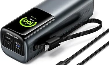 VENTION Power Bank 27000mAh da 200W. Alta capacità 27000mAh, con batteria al litio, ideale per dispositivi ad alto consumo energetico. Offre porte USB-C (140W e 100W) e USB-A (60W), permettendo la ricarica simultanea di più dispositivi. Dotato di display TFT intelligente per monitoraggio in tempo reale (batteria, potenza, temperatura) e diversi sistemi di sicurezza, garantisce prestazioni elevate e protezione affidabile.