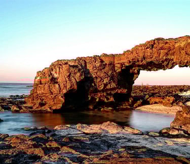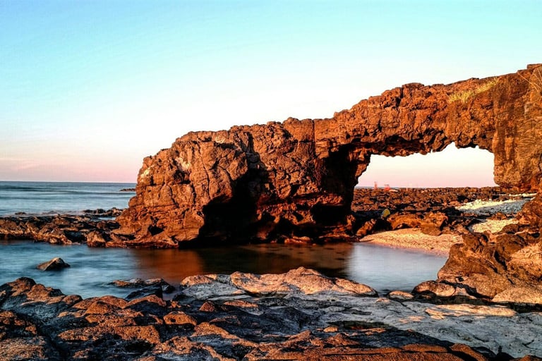 La Geologia e i Paesaggi Lunari Il cuore di Lý Sơn batte al ritmo della sua origine vulcanica. Passeggiare sull'isola significa immergersi in un paesaggio quasi lunare, caratterizzato da crateri spenti, scogliere frastagliate di roccia lavica e formazioni rocciose uniche modellate dal vento e dal mare. La "Porta del Paradiso" (Cổng Tò Vò) è un arco naturale di roccia basaltica formatosi dalle ceneri vulcaniche, dove le onde si infrangono creando scenari mozzafiato, soprattutto all'alba e al tramonto. È un luogo perfetto per ammirare la potenza della natura.