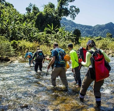 Fiume Chay e Suối Moọc (Sorgente Moọc): Luoghi ideali per kayak, nuoto e zipline in un contesto naturale incontaminato, con acque cristalline e una giungla rigogliosa.