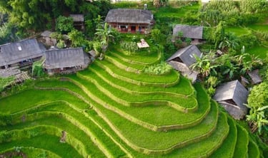 A poche ore da Hanoi, Mai Chau è un rifugio verde dove si vive a stretto contatto con la natura. Gli homestay qui sono spesso costruiti su palafitte di bambù, immersi tra campi di riso e sentieri rurali.