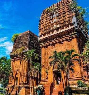 Torri Cham di Banh It e Thap Doi – testimonianze affascinanti del passato Champa, immerse nel verde.