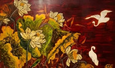 Molti artisti reinterpretano tecniche antiche come la pittura su lacca (sơn mài), simbolo dell’arte vietnamita classica, trasformandola in mezzo espressivo moderno.